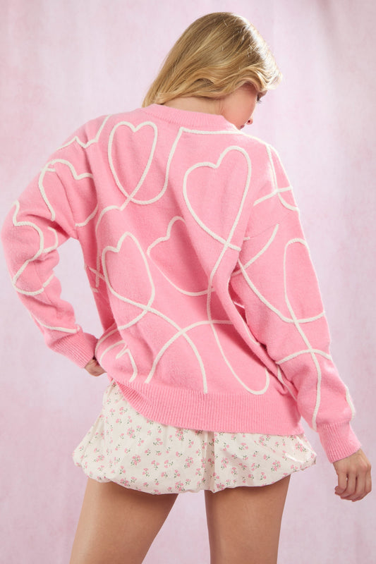 Valentine's Day Embroidered Heart Pullover Sweater